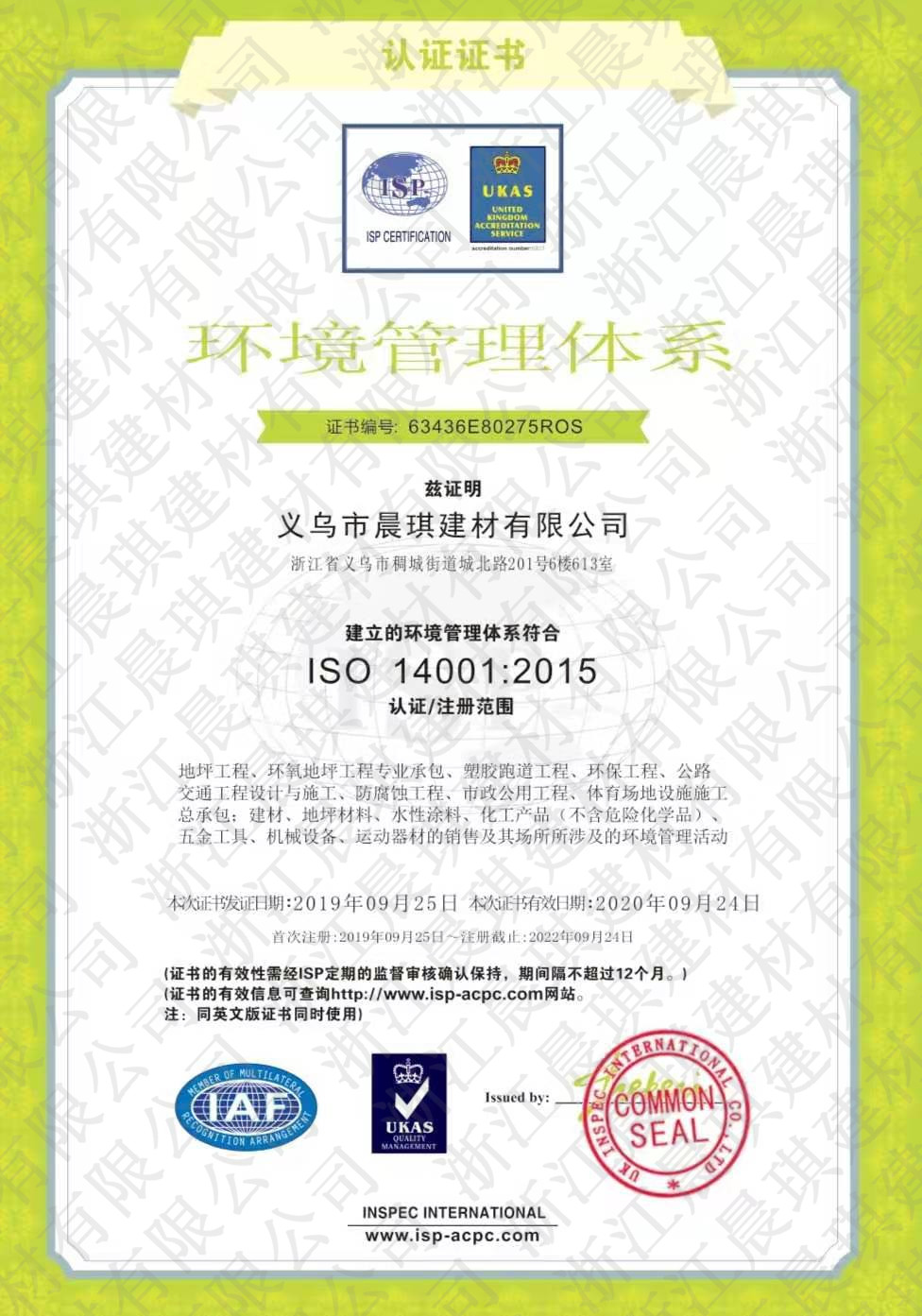 環(huán)境管理體系證書
